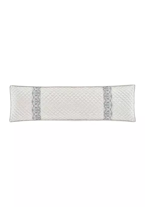 The Adagio oversized rectangular bolster pillow adds dimension to your space and is large enough to share on those cozy nights. Detailed with an elegant motif, woven with a delicate puff construction in shades of sterling silver and French blue. The quilted design is a classic diamond shape on a creamy matte satin ground, adding a touch of a modern elegance. Self -fabric piping all around finishes the gusset, adding a fine quality that this product is known for. This intricately designed pillow is made to coordinate with the Adagio bed set.