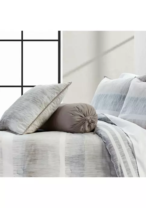 The Adagio 4 Piece Comforter Set is designed to capture modern elegance. The large scale medallion pattern is delicately woven to have a 3-Dimensional weave in shades of sterling silver and French blue on a creamy matte satin ground. The comforter is piped all around and double tassels adorn the front corners for added detail. Paired with matching shams and a bedskirt that is trimmed with a scroll design and a woven band that pulls the beauty all together. The Adagio set is sure to add a touch of luxury and updated elegance to your bedroom decor. Pair this bedding collection with the Adagio throw pillows, shams, and window treatments for a complete look.