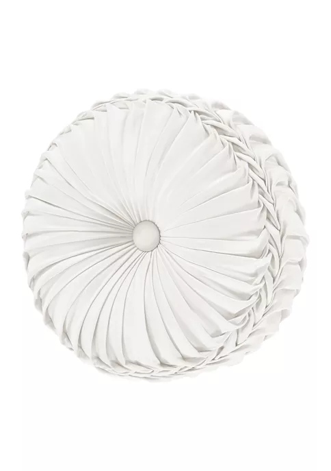 The Becco Tufted Round decorative pillow features a pure white color ground with hand-pleating and tufting details for a truly stunning accent to your bedroom decor.