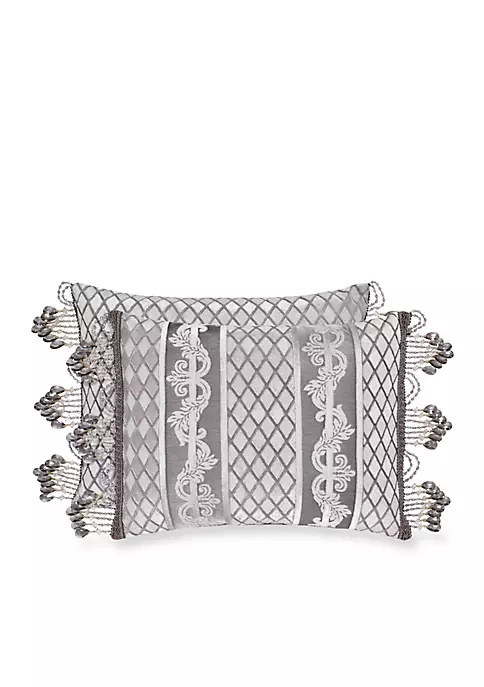 The face of the Bel Air Boudour pillow uses an elegant border fabric separated by an accented diamond fabric. Finished with a beautiful crystal trim, it’ll add a touch of scintillating appeal to your bedroom scene.
