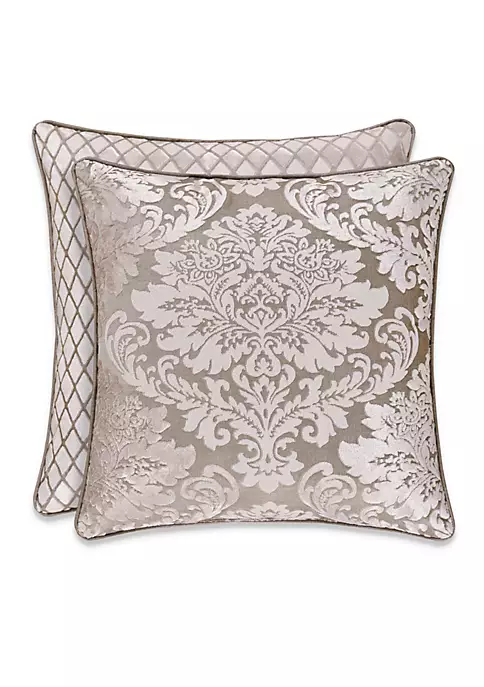 This square pillow centers a large damask and reverses to the diamond coordinate. Finished with a fine solid cord, this pillow is thoughtfully constructed to add style to any space.