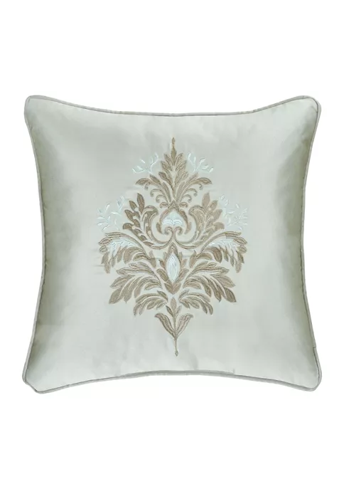 The Belgium – Spa 18″ Square Throw Pillow features a soft spa blue ground, highlighted by delicate tones of blue and graphite grey embroidery to create a detailed damask design. Self-fabric piping all around finishes the fine quality accent piece and is made to coordinate with the Belgium – Spa bed set.