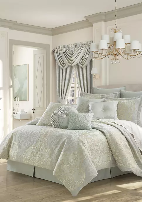 The Belgium – Spa 20″ Square Throw Pillow features a highly detailed woven damask in white gold and spa blue yarns, adding luster, dimension and shine to your decor. Self-fabric piping finishes this fine quality accent piece and it is made to coordinate with the Belgium – Spa bed set for a complete look.