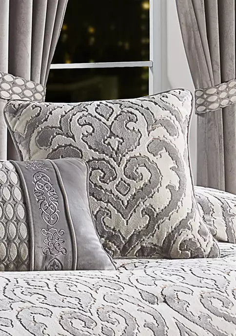 The Adagio oversized rectangular bolster pillow adds dimension to your space and is large enough to share on those cozy nights. Detailed with an elegant motif, woven with a delicate puff construction in shades of sterling silver and French blue. The quilted design is a classic diamond shape on a creamy matte satin ground, adding a touch of a modern elegance. Self -fabric piping all around finishes the gusset, adding a fine quality that this product is known for. This intricately designed pillow is made to coordinate with the Adagio bed set.