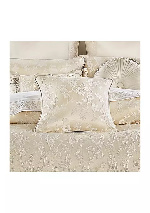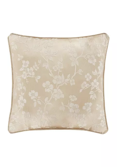 The Blossom 18-inch decorative throw pillow is sophisticated and clean with its dramatic use of a woven jacquard all over floral pattern on the face. This beautiful square pillow is constructed in a soft ivory color. The 18-inch decorative pillow is reversible with satin finished look on each side and finished with a 0.25-inch ivory piping. Pair this pillow with the blossom bedding set and window treatment by J. Queen New York for a complete look.