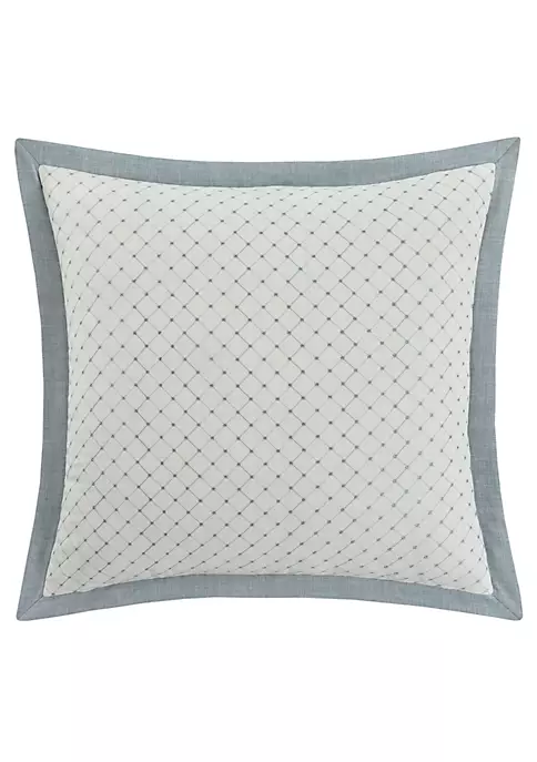 The Blue Garden Euro Sham showcases a simple yet elegant diamond embroidery that serves as the perfect backdrop to this bedding collection. The soft blue pillow sham is finished with a natural flange and hidden zipper for added elegant detail.