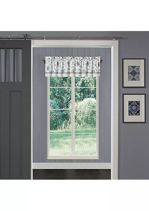 The Blue Garden Straight Valance is constructed with a beautiful floral embroidery in soft blue colors on top of a textured spa blue base fabric. Bordered with a band of ivory tonal fabric and a diamond embroidery with an embellished trim, this Farmhouse style window valance is the perfect touch to complete your window.