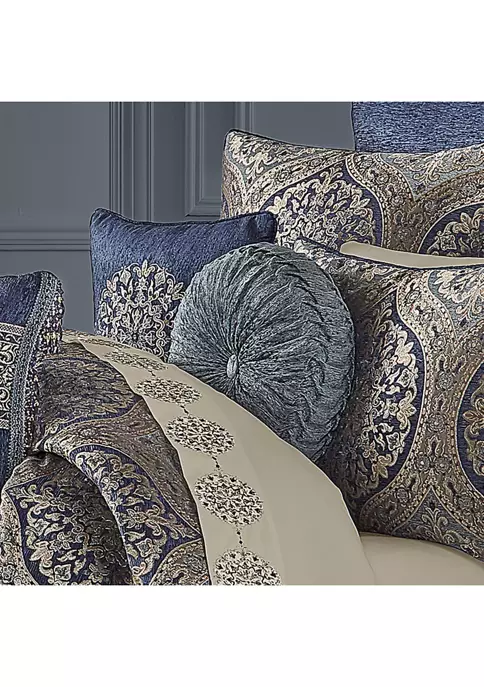 The beautifully constructed Tufted Round Throw Pillow is made using a plush dusty blue chenille, with a tufted 1.5-inch self-fabric covered button in the center. The pleating and pinching technique creates a spherical shape for a truly stunning accent to your bedding or furniture.