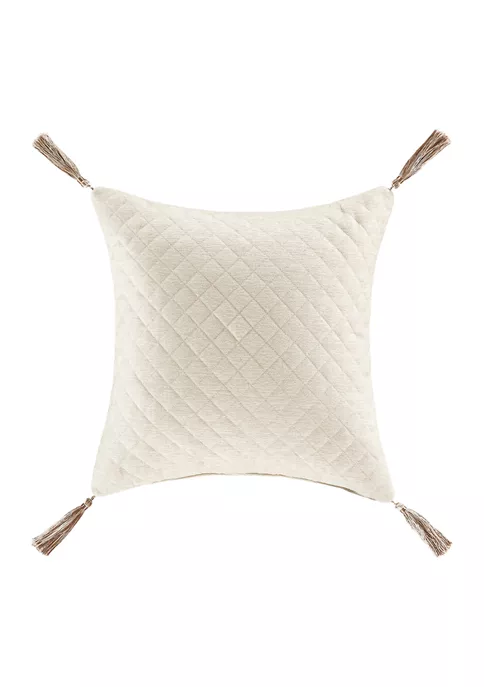 The Braelynn 18″ Decorative Throw Pillow is exquisite with its use of egg shell chenille tone. This beautiful square accent pillow features a diamond quilt pattern on the face with solid chenille on the reverse. An additional detail of this pillow is the 1.5″ tassels inserted into each corner of the pillow.