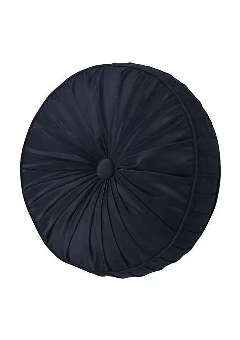 The tufted round pillow uses luxurious royal blue fabric to create a one of a kind accent to this bedding ensemble. These unique pillows are sewn by hand and are finished with a fabric-covered button on both sides.