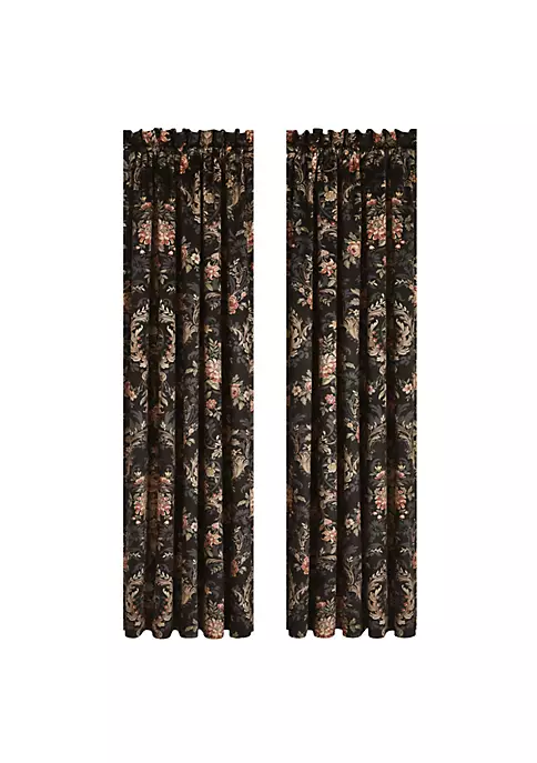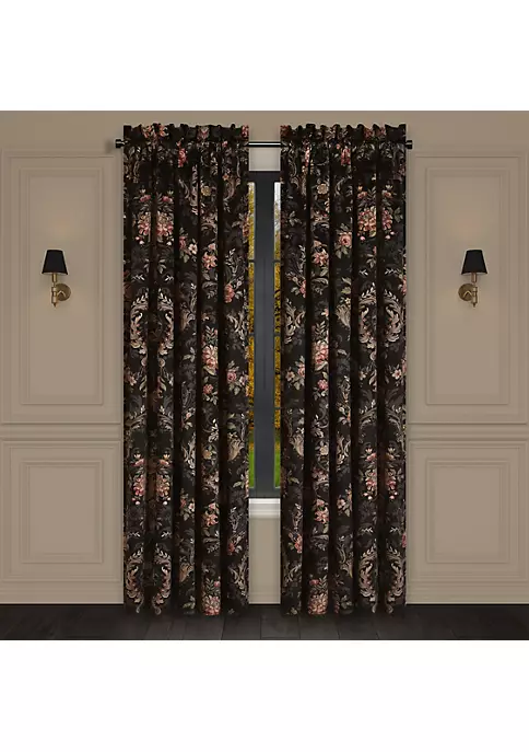 The Chanticleer Window Panel Pair is exquisite with its fine use of black with sun kissed colors ranging from copper, red, gold, cream with homered green leaves. This beautifully printed floral design is carefully detailed and truly sophisticated. These lined panels include tiebacks and are the perfect finishing touch to complete this coastal look while filtering light and keeping you comfortable throughout the day. The 3″ header and 3″ rod pocket make these panels easy to hang. Coordinate the window panels with the Chanticleer window valance and bedding collection.