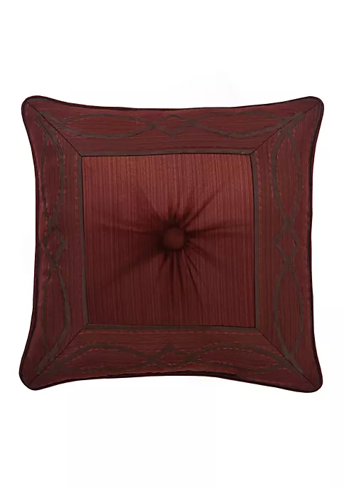 The Chianti 18” Square Decorative Throw Pillow is constructed with a lustrous stria satin base fabric, with a tufted fabric covered button in the center , and bordered with a geometric puff jacquard technique in red tones. This modern stylish accent pillow reverses to a sleek stria satin and self-cord finish.