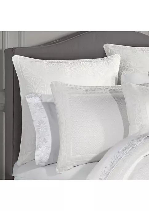 Traditional meets modern with the luxurious Epic Euro sham. The Euro sham features pure white mitered raised jacquard stripes, and reverses to a vertical woven foulard design and it is finished with a corded edge and a hidden zipper closure. This lovely backdrop coordinates with the comforter set and accessories (each Euro sold separately).