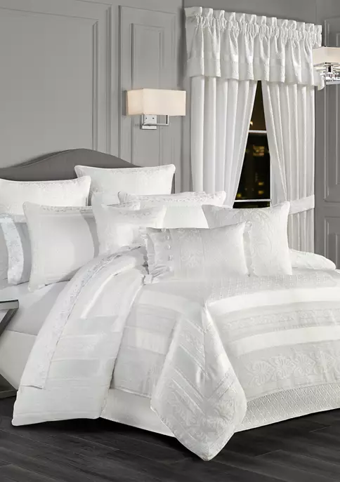 Queen comforter: 96″ x 92″, 2 standard shams: 20″ x 26″, queen bedskirt: 82″ x 60″