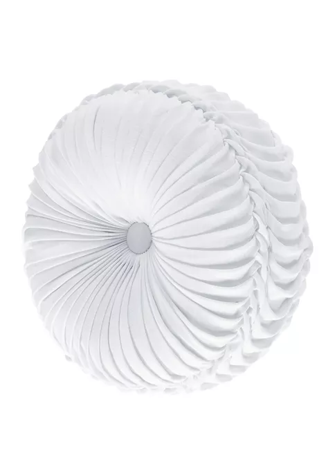 This tufted round pillow from J. Queen New York uses white-colored faux linen to create a one of a kind accent to this bedding ensemble. These unique pillows are sewn by hand and are finished with a fabric-covered button on both sides.