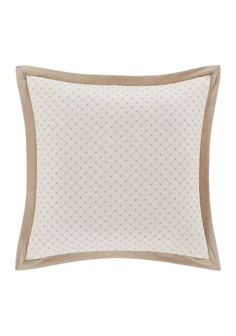 The Garden View euro sham showcases a simple yet elegant diamond embroidery that serves as a perfect backdrop to this bedding collection. The ivory pillow sham is finished with a natural flange and hidden zipper for added elegant detail. Pair this sham with the garden view bedding collection to complete the farmhouse look.