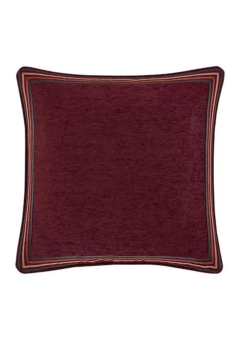 The Garnet Euro sham is perfectly mitered with a luxurious striped border of chenille around all sides in shades of red, teal, orange, and gold. The reverse of this pillow is a beautifully woven stripe running vertical, finished with a red chenille piping, and hidden zipper closure for added detail. This 26-inch Euro sham is the perfect backdrop to this traditional collection. Pair this pillow sham with the garnet bedding set by J Queen New York for a complete look.