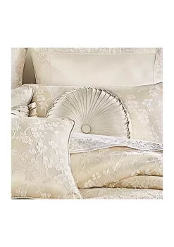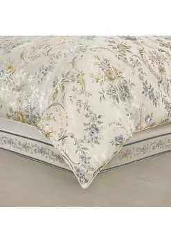 The Genevieve 20 Inch Square Throw Pillow features a woven floral jacquard motif centered within the pillow. The reverse side features vertical stripes and floral bands all in ivory, gold, blue, and homered green leaves. This accent pillow will add elegance to your bedroom decor. The Genevieve Comforter Set and Window Treatments are available separately. 1 20″ Square Decorative Throw Pillow: 20-In. X 20-In.