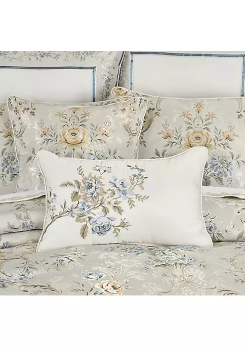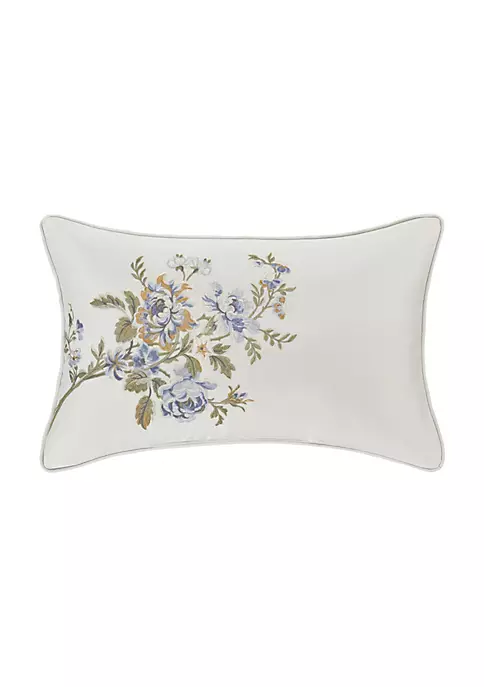 The Genevieve Boudoir Throw Pillow features a lovely ivory base fabric which beautifully displays an intricate floral embroidery design an various shades of gold, blue, and green. The pillow reverses to a coordinating solid ivory fabric. This accent texture pillow will add elegance to your bedroom decor. The Genevieve Comforter Set and Window Treatments are available separately. 1 Boudoir Decorative Throw Pillow: 15-In. X 21-In.