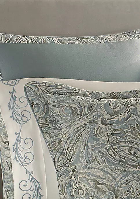 The Euro sham has a mitered designed formed from an engineered border. The sham reverses to solid white chenille for a classic finish.