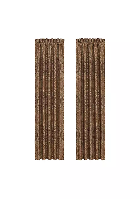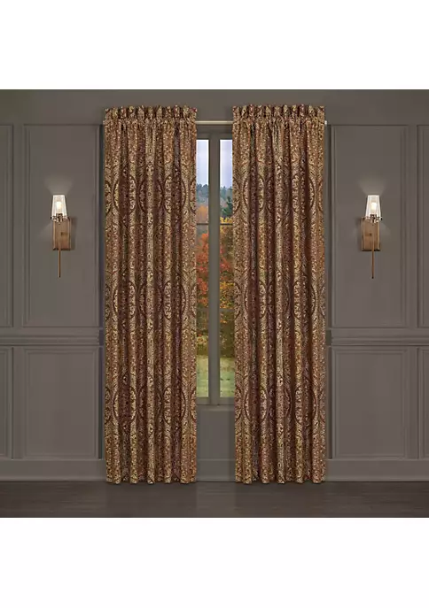 The Harvest Moon Window Panel Pair is exquisite with its fine details and sophisticated use of terracotta and gold colors. This beautifully woven jacquard medallion fabric is truly timeless and rich with its soft chenille finish. These lined panels include tiebacks to create an open look, and they provide ample room darkening shade, keeping you comfortable throughout the day. The 3″ header and 3″ rod pocket make these panels easy to hang.