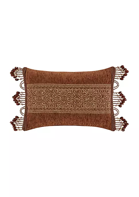 The Harvest Moon Boudoir Pillow is beautifully embroidered on a rich terracotta design house quality chenille fabric. This decadent pillow is embellished with a sparkling crystal tassel fringe and braided gimp to add a traditional luxury look to your bedroom decor.