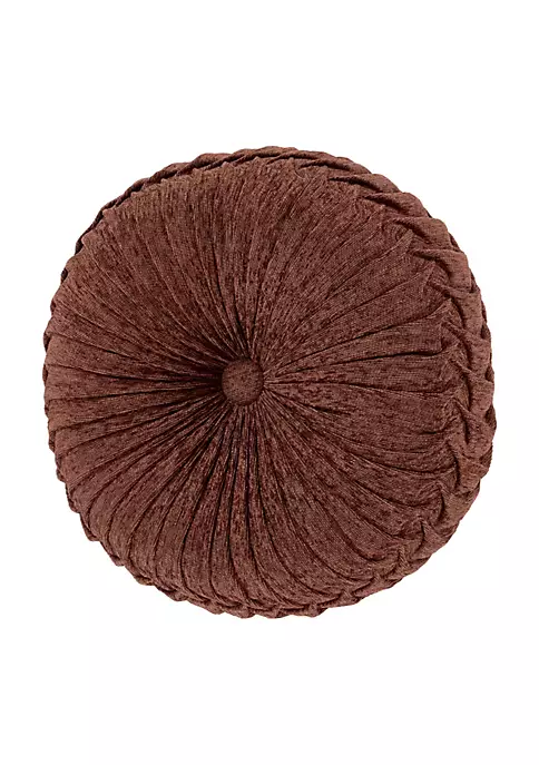 The Harvest Moon Tufted Round Pillow uses a beautiful terracotta burgundy blend chenille fabric to create a one of a kind accent to this bedding ensemble. This 15″ unique round throw pillow is sewn by hand and it finished with a fabric covered button on both sides.
