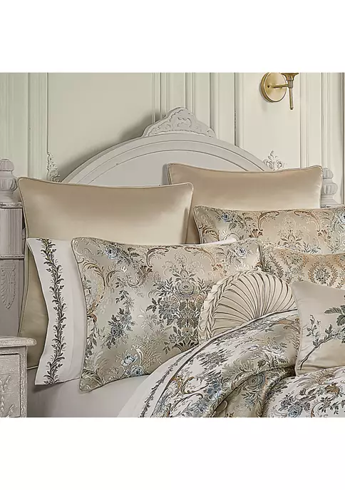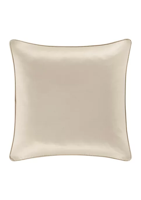 The Jacqueline Euro Pillow Sham adds an elegant dimension to this luxurious ensemble. The ivory pillow sham uses a soft satin fabric and the reverse of the pillow sham features a plush fabric hidden zipper closures and ivory piping. The Jacqueline Comforter Set and Window Treatments are available separately.