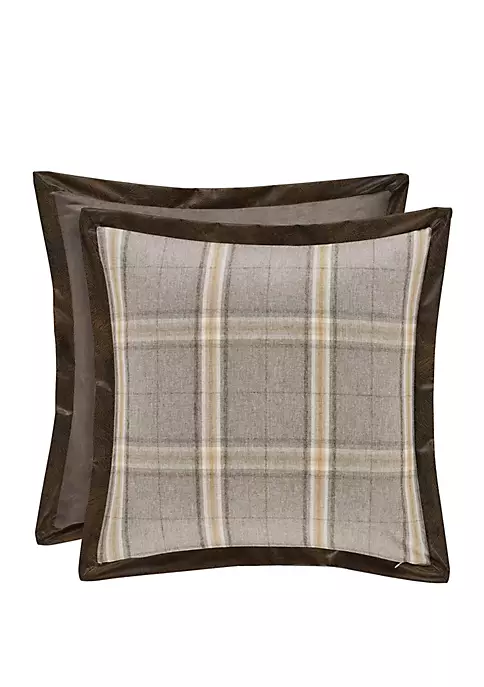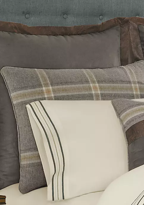 The Jaspen Euro Sham by J Queen New York features a solid charcoal faux suede with a faux leather flange, enhancing its stylish and rugged appeal.