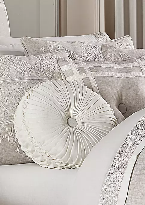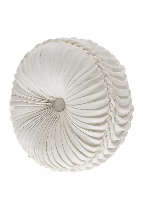 The Lauralynn tufted round pillow from J by J Queen New York uses white-colored faux linen to create a one of a kind accent to your bedding ensemble. This unique pillow is sewn by hand and finished with fabric-covered buttons on both sides.
