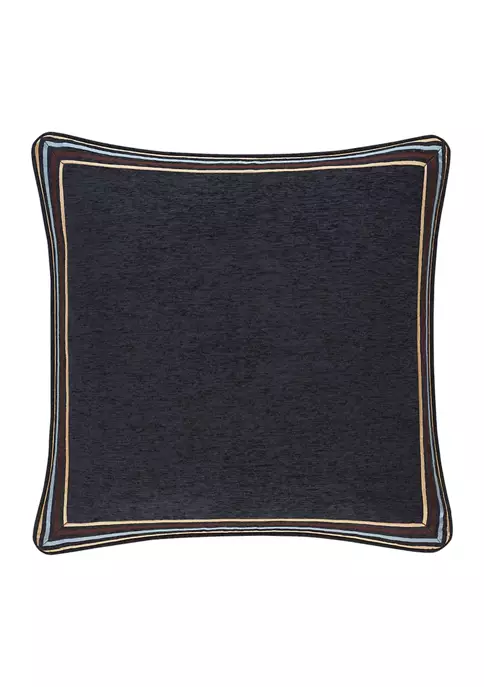 The Lazaro Euro Sham is perfectly mitered with a luxurious striped border of chenille around all sides in shades of indigo, pale blue, brown, and cream. The sham features a hidden zipper closure for added detail.