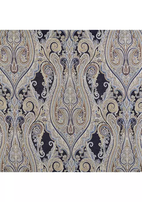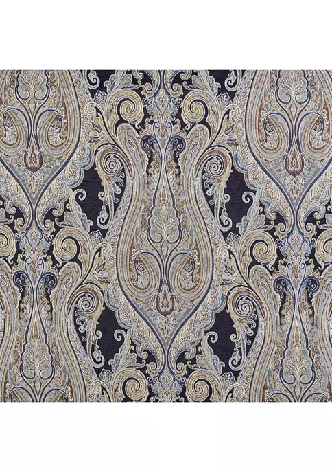 The Lazaro 4 Piece Comforter Set Collection is majestic with its graceful woven damask design and beautiful lines in shades of indigo, pale blue, brown, and cream. Using chenille and twisted yarns, this woven jacquard ensemble is luxurious and grand. Paired with matching shams and a solid chenille split-corner bedskirt this design is sheer perfection.
