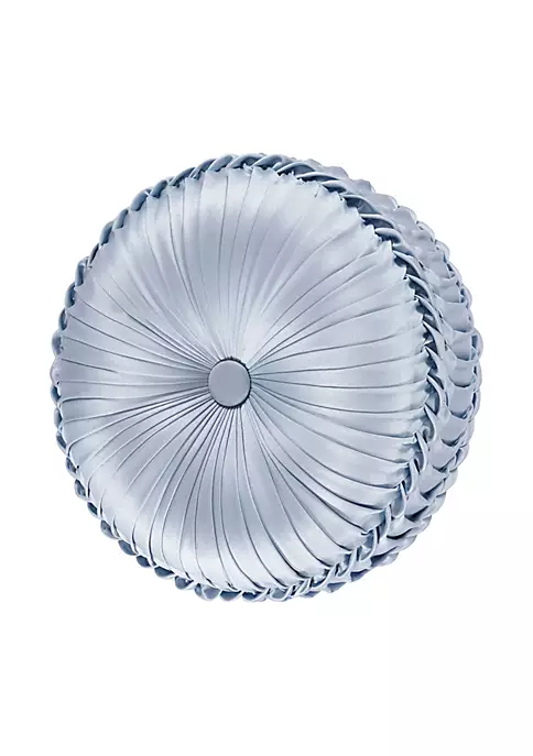 The Liana Tufted Round Pillow uses a beautiful powder blue satin fabric to create a one of a kind accent piece to add this bedding ensemble. This 15″ unique pillow is sewn by hand and is finished with a fabric covered button on both sides.