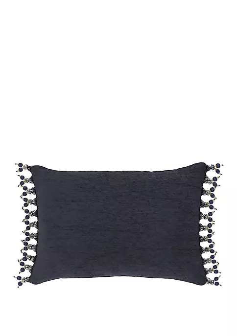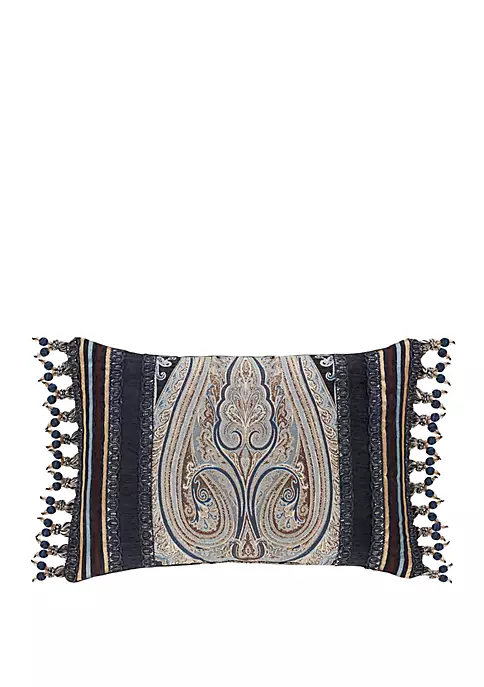 The Luciana boudoir throw pillow by J Queen New York is pieced with beautiful jacquard and striped chenille fabrics and is embellished with a beaded tassel fringe and braided trim.