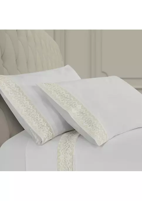 Add a luxurious foundation to your bed with the Majestic – Sheet Embroidered Pillowcase Pair. Featuring an ornate embroidered scroll border, detailed with a darker yarn outline for a stunning shadow effect and further definition. Crafted with plush 100% Cotton fabric that feels cool, soft to the touch, and breathable for a rejuvenating night’s sleep. The pillowcases are available in multiple colors to coordinate beautifully with the Bedding collections and are machine washable for easy care.