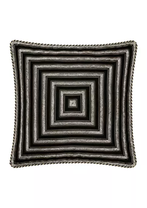 The Melina Euro Sham is beautifully engineered with a yarn dyed mitered stripe in dramatic black and silver chenille tones and accented with metallic yarns. The Euro sham reverses to a solid black faux-silk fabric and is finished with a tri-colored twist cord trim. Pair this Euro sham with the Melina bedding set for a complete look.