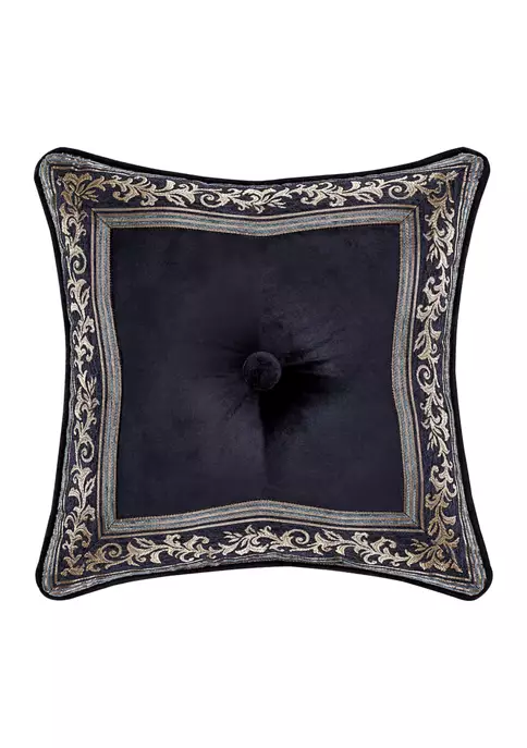 The Middlebury 18 Inch Square Decorative Throw Pillow is luxuriously designed with a lush indigo blue rayon cotton velvet fabric with a scroll stripe border that is mitered on all four sides, framing the outer edge of the pillow. A deeply tufted indigo velvet button adds a luxe detail and it reverses to a solid indigo velvet for versatility. Pair this pillow with the Middlebury Bedding set for a completely elegant look.