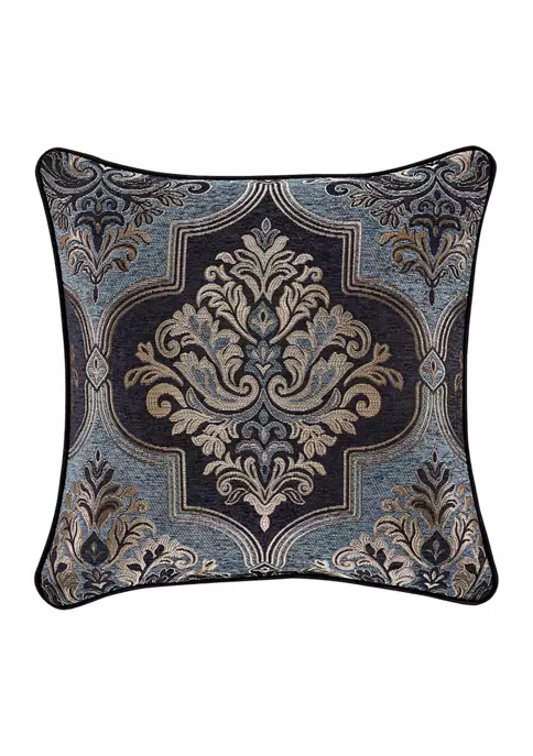 The Middlebury 20 Inch Square Decorative Throw Pillow is luxuriously designed with a woven indigo damask pattern and it reverses to a woven scroll stripe running in a vertical direction for added versatility. Pair this pillow with the Middlebury Bedding set for a completely elegant look.