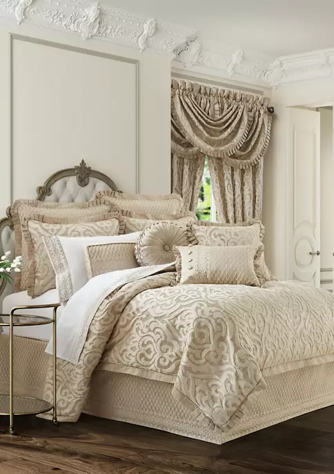 Hand crafted luxury, the Montpellier boudoir pillow adds texture and elegance to the ensemble. A special pleating effect using the textured satin is combined with the delicate coordinating border and diamond fabric to create a custom accent pillow. Both ends of the boudoir are finished with pleated satin flanges and the reverse of the pillow is a textured sand color satin.