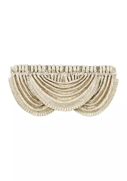 The elegant Montpellier Waterfall Valance adds a dramatic, decorator touch to the drapery panels. They are made from the same iron gate damask fabric as the panels and are trimmed along the bottom edge with 1 ½” pleated satin trim. The valances are lined on the reverse and feature 3” headers and 3” rod pockets. To achieve the look in the photo we recommend using 3 valances (each sold separately).