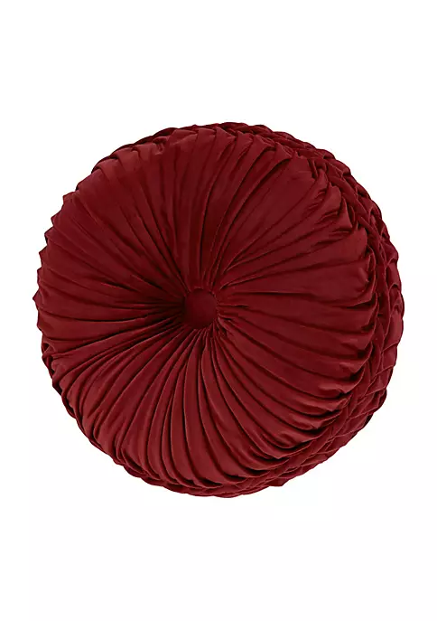Decorate your home for the holidays with the Noelle Tufted Round Throw Pillow. This 15″ unique round accent pillow is sewn by hand and is finished with a fabric covered button on both sides. Complete the Noelle collection and celebrate the season in style with luxurious Holiday bedding, bath and window from J. Queen New York. Available in stunning plush velvet crimson red or evergreen color options. 1 Tufted Round Decorative Throw Pillow: 15-In. X 15-In.