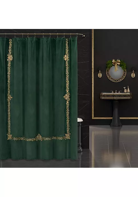 The Noelle Shower Curtain features a soft velvet ground, with a gold scroll embroidered framed-border. This tasteful Christmas curtain works well during the holiday seasons, yet its versatile design works well after the holidays as well. It is available in crimson or evergreen color options. 1 Shower Curtain: 72-In. X 72-In.