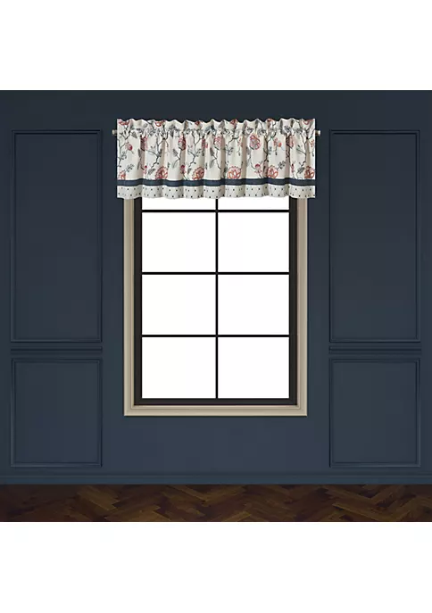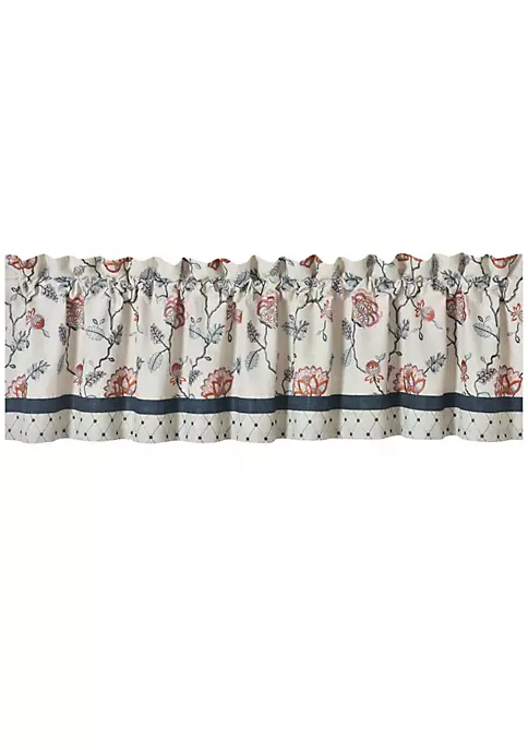 The Parkview Straight Valance is constructed with a beautiful floral embroidery in shades of Coral, Blush, Taupe and Navy. The embroidery sits on top of a textured natural linen base fabric matching perfectly to the Parkview comforter set. The valance has a solid navy band and a diamond embroidery adding additional wow details to this stylish window valance. The perfect touch to complete your window, pair this valance with the Parkview Window Panels and Bedding Collection to complete the look.