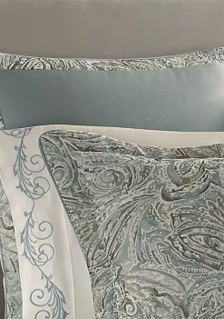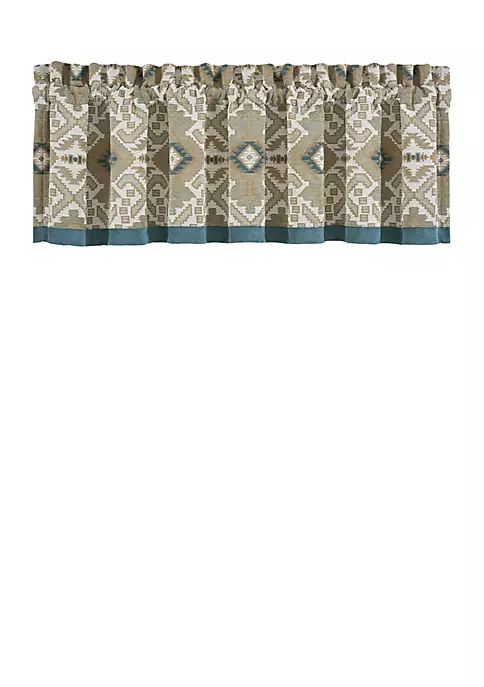Featuring a solid teal faux suede border, this window valance by J Queen New York enhances the look of any room.