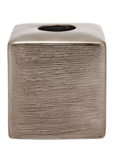 Ths Princess tissue cover is a beautiful addition to any bathroom. This textured piece is made of stoneware with a metallic electroplated finish for a subtle shimmer, making it perfect for giving any bathroom an updated look.