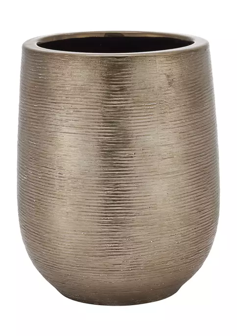 The Princess wastebasket by J Queen New York is a beautiful addition to any bathroom. The textured pieces are made of stoneware with a metallic electroplated finish for a subtle shimmer.