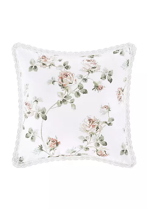 Inspired by artisan porcelain, the Rialto – Sage 16″ Square Throw Pillow features a classic floral design creating an atmosphere of sophisticated elegance. The printed blush and soft sage floral pattern is simple yet lovely. Surrounded by a delicate lace and reversing to a ticking stripe, this pillow gives versatility to this charming design. Add the Rialto – Sage comforter set or quilt set to complete the designer chic look.