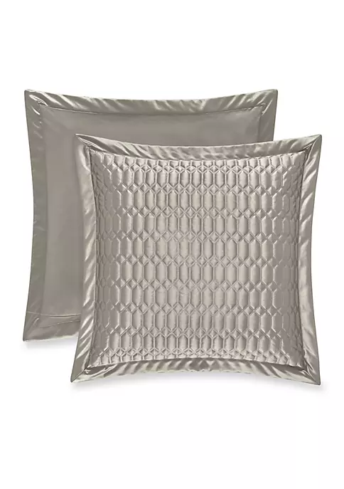The individually sold Euro Shams perfectly match the glamorous coverlet with the custom geometric quilt pattern and a 2″ mitered border. The Euro shams also include a hidden zipper.