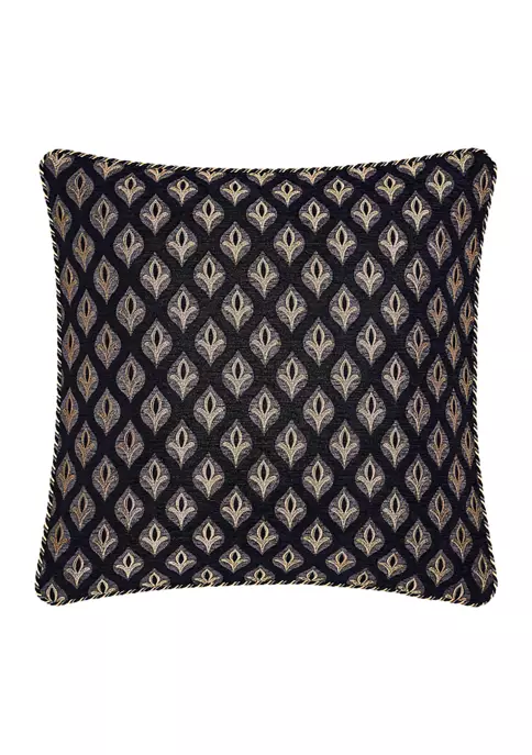 The Savoy Euro Sham beautifully accents you bedding décor with a stunning reversible option. Designed with a woven foulard design on the face in stunning black and gold and framed with a tri-color twist cord for added detail. The euro reverses to the solid black chenille and a hidden zipper closure along the bottom edge keeps the large pillow firmly in place, making it the perfect finishing backdrop.