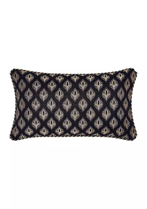 The Savoy Boudoir Pillow is uniquely crafted with a woven chenille black and gold foulard design, and is framed with a tri-colored twist cord for added detail. The reverse side made with a solid black chenille.